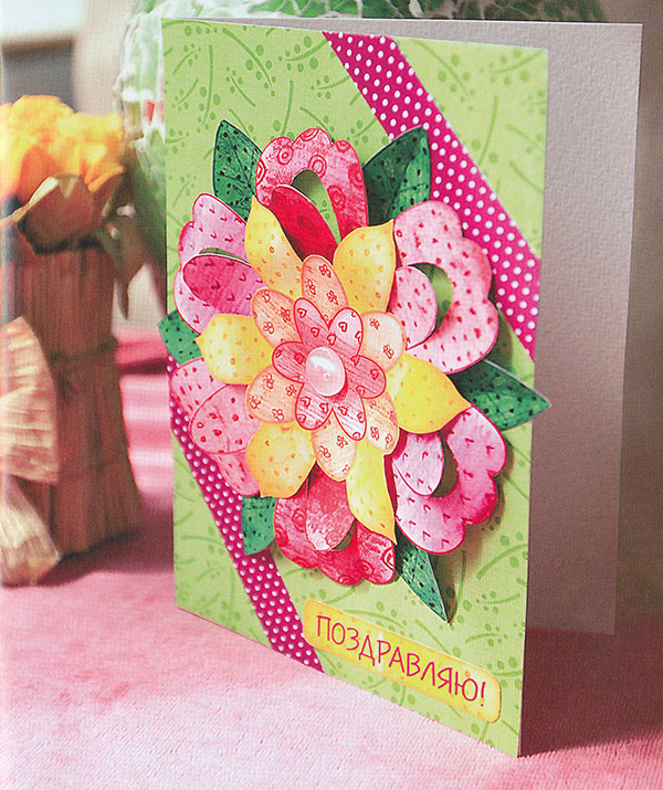 Ступеньки на сгибеОбъемная открытка на День Матери.