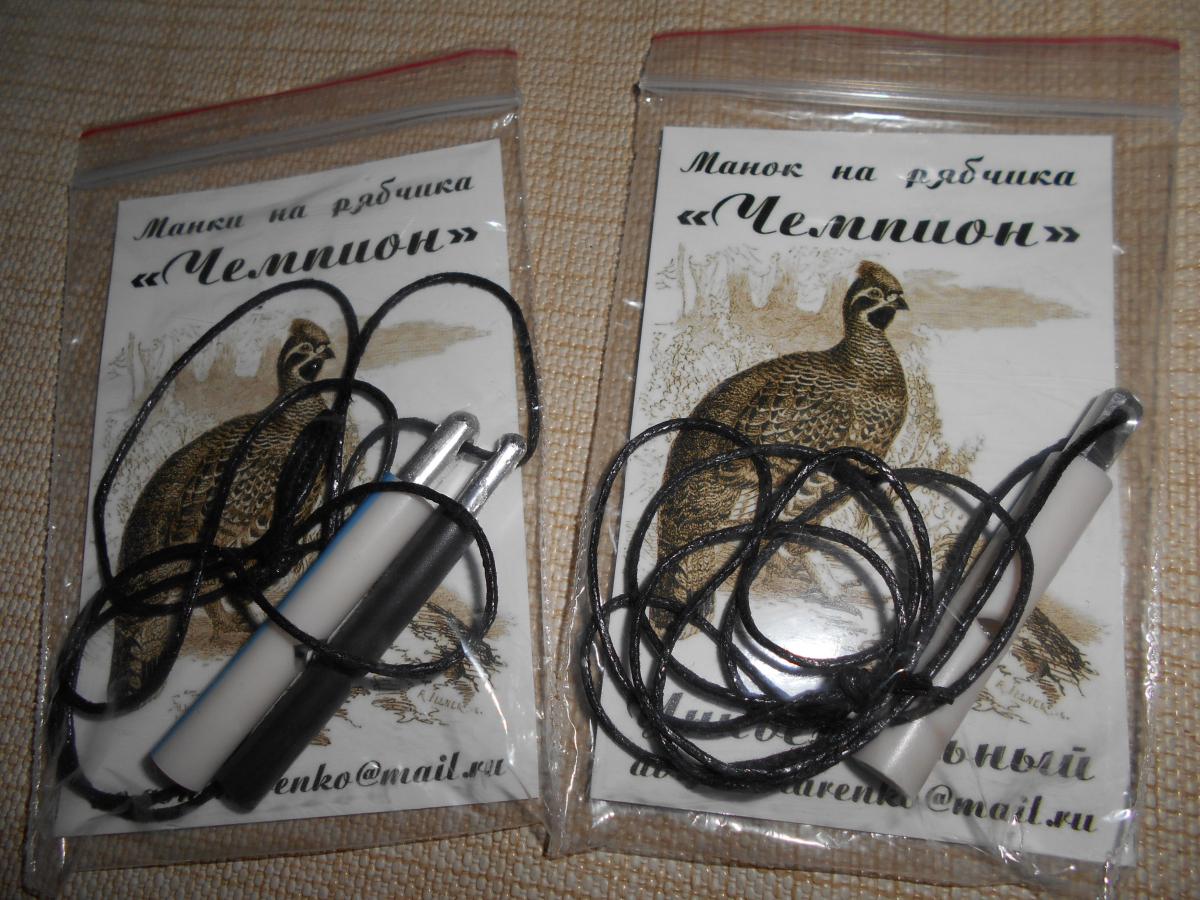 Да и как трофей рябчик радует охотника его мясо всегда считалось деликатесным. Манок признан российскими охотниками как одним из лучших для приманивания рябчика. Он издает свист рябчика-петушка. Протяжный, очень тонкий, длящийся несколько секунд. По тону, он близок к писку синиц-гаичек, московок и корольков недаром они часто на него откликаются. Мелкий и очень приятный для слуха, он состоит из пяти-семи слогов или колен: двух-трех протяжных, высоких (первый несколько продолжительнее) и трех-пяти коротких и низких, сливающихся в переливчатую трель.Частота этих звуков (по качеству и замерам орнитологов) около 7 000 кГц, громкость такова, что при благоприятных условиях свист рябчика слышен за сто и более метров.