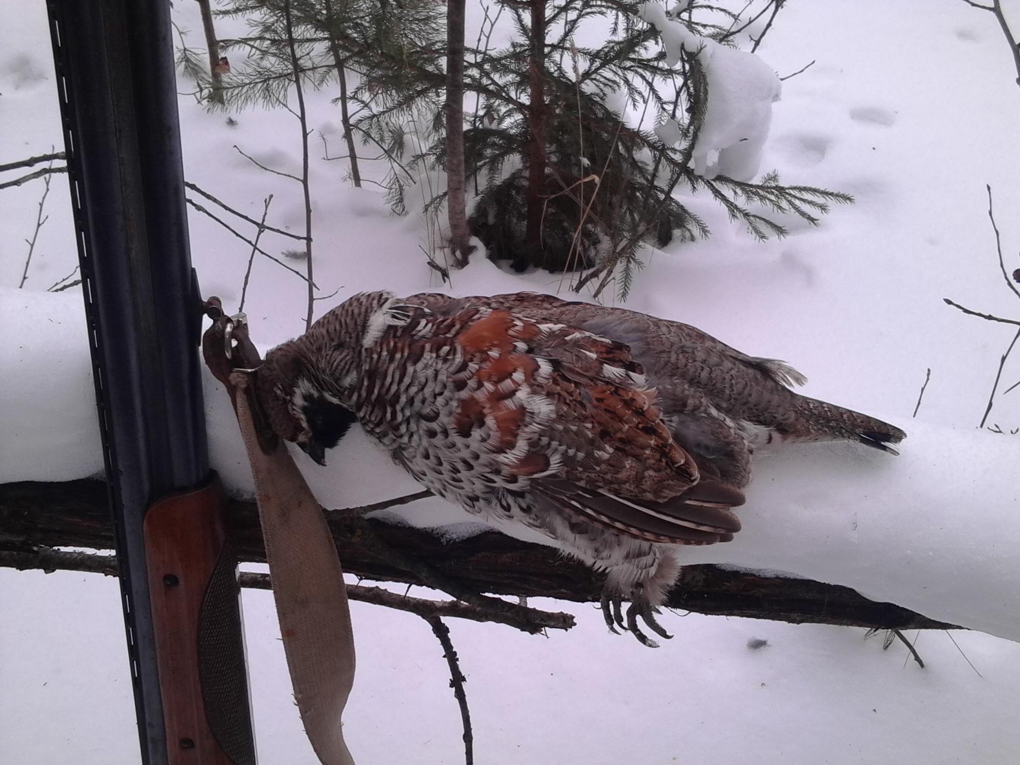 То есть к концу ноября у охотника остается только три способа добыть рябчика: подманить его во время короткой кормежки или отдыха на поверхности в теплый солнечный денек, вытоптать из лунки и застрелить влет или поймать ловушкой (ловушки это вообще отдельная тема).
