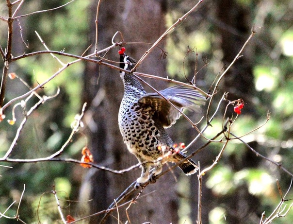Болотистые места также не привлекают рябчика. Он стремится в угодья, где имеются черника, брусника и, особенно, рябина.
